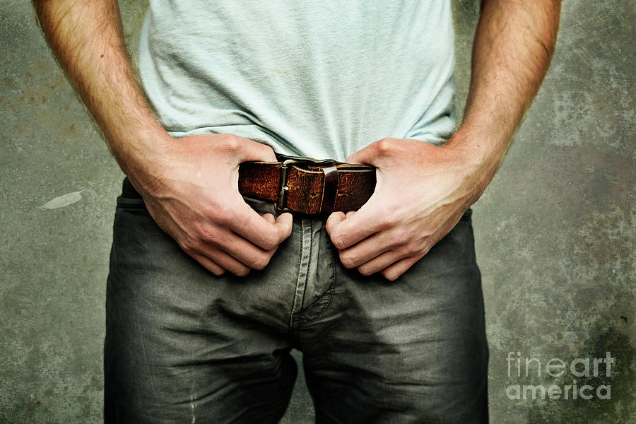 3. Правильно надетый мужской ремень выглядит так: облегает талию и бедра, но не перетягивает их. Застегнут на среднюю (обычно — третью) дырку, а свободный конец продет через шлевку штанов и не болтается. Идеальная длина свободного конца застегнутого ремня — длина большого пальца или чуть больше.