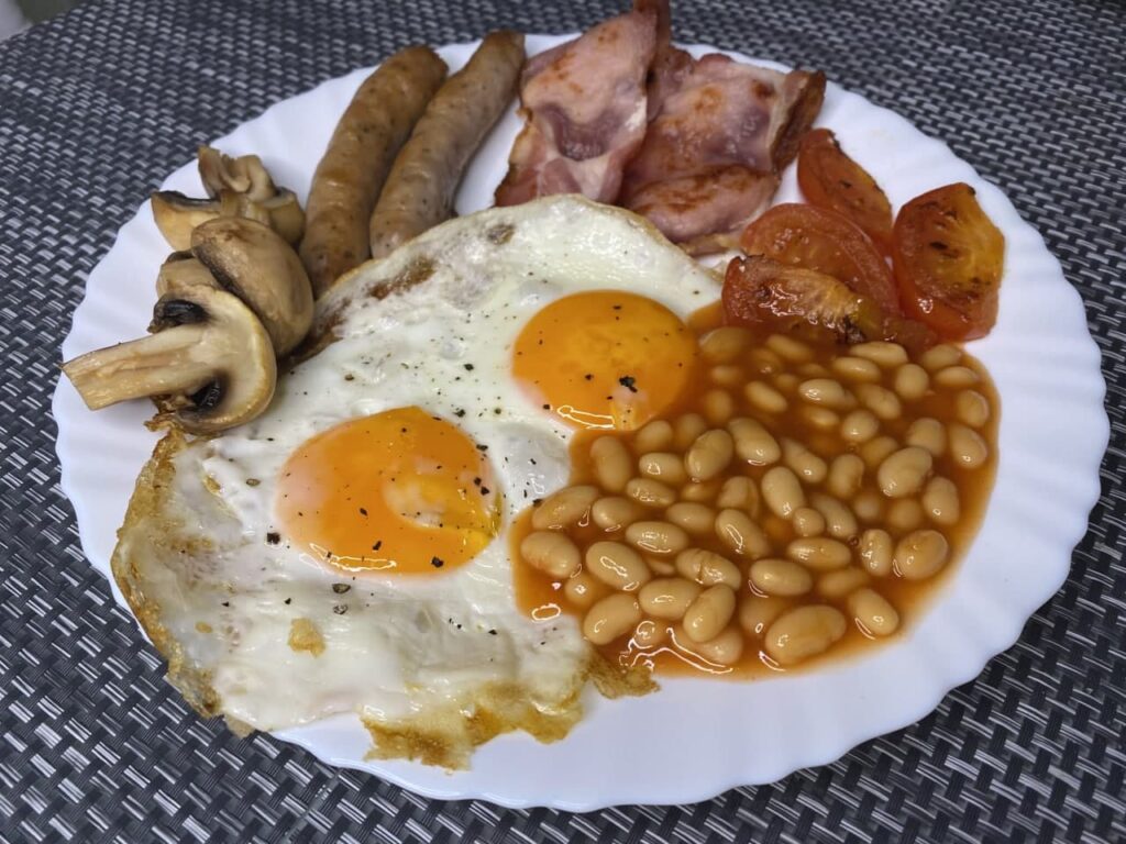 В основной состав входят яйца, бекон, фасоль и колбаски, однако при желании трапезу можно дополнить еще массой ингредиентов.