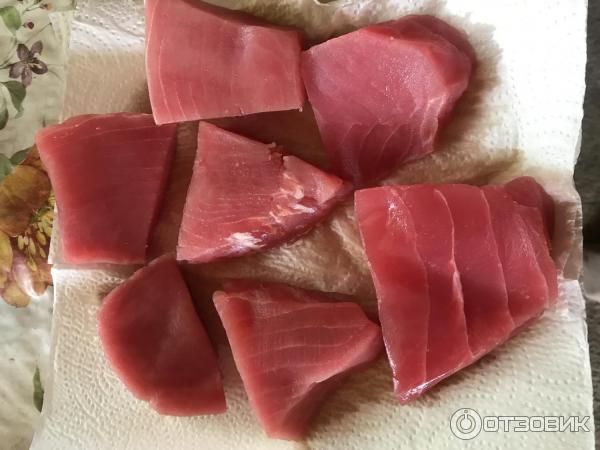 Филе тунца по вкусу кому-то напоминает телятину, кому-то курицу. Во многих странах мира тунец — деликатес среди морской рыбы.