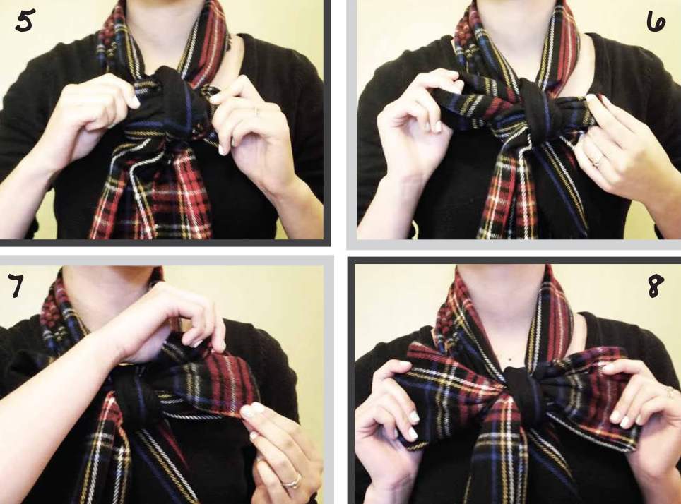 как красиво завязать шарфы косым бантом пошагово