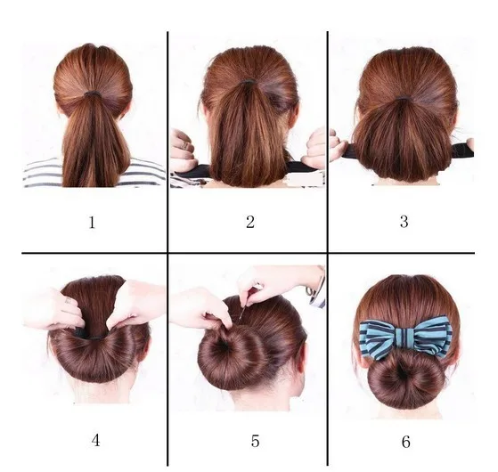 - Булочка: Убедитесь, что резинка булочки для пончиков крепкая и не изношена. В противном случае поврежденная резинка пучка будет торчать и испортит пучок.