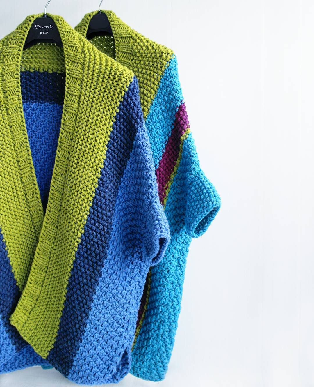 Отлично подходит для начинающих, потому что вам просто нужно знать, как вязать столбики с накидом и вязать столбики с накидом. Затем, чтобы сделать простую форму этого кардигана, все, что вам нужно сделать, это создать два прямоугольника и сшить их вместе.