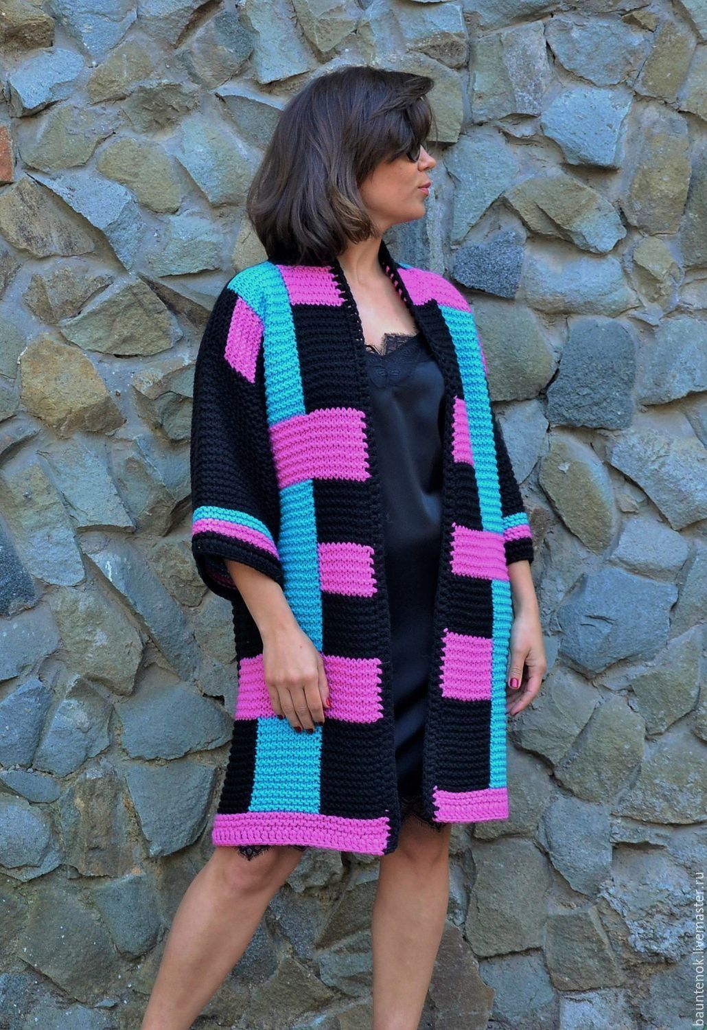 Схема вязания крючком каскадного кимоно-кардигана