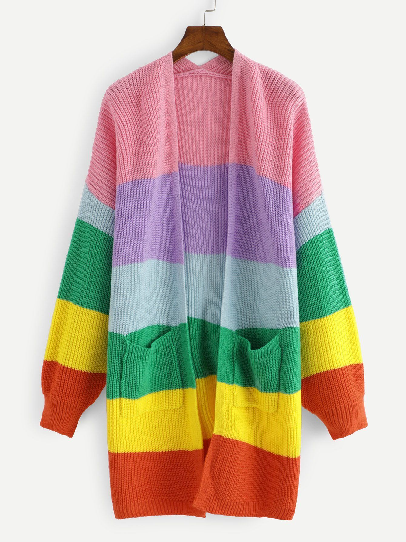 Удлиненный кардиган разноцветными полосками спицами – как вязать