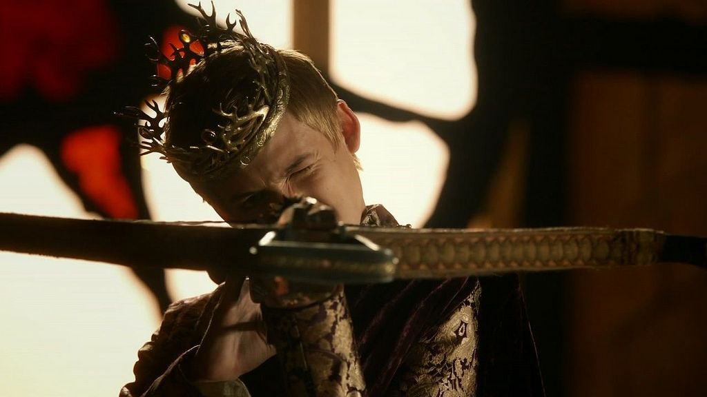 Однако он чертовски злой, и одним из его первых приказов как короля является приговорить Неда Старка к смертной казни.