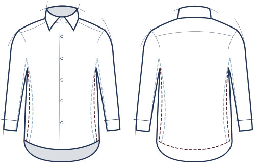 Внимание! Линии с двух сторон изделия должны быть симметричны. Если ушивается новая рубашка, то для начала ее нужно постирать, чтобы она дала усадку.