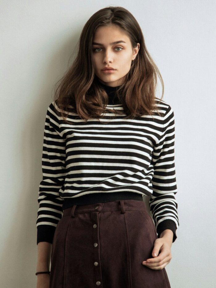 Кроме того, на парижанках можно часто увидеть «базовые» принты: в полоску, в горошек или цветастый. Главное правило при выборе базового верха — качество материала (исключительно натуральные ткани). При выборе свитера и джемпера смотри только на благородные материалы — в первую очередь кашемир, шерсть и ангора (точно не акрил).