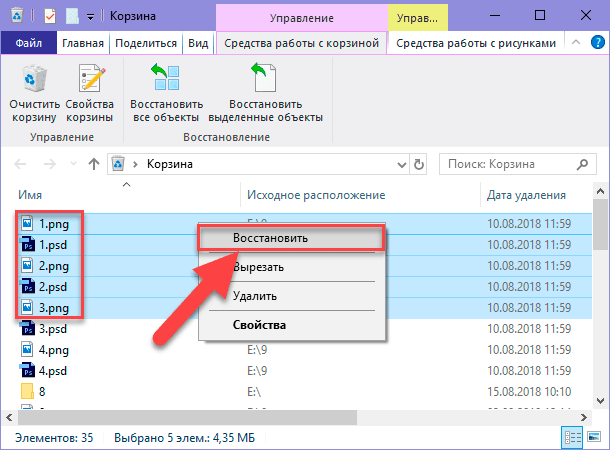 - Щелкните элемент правой кнопкой мыши и выберите Восстановить .