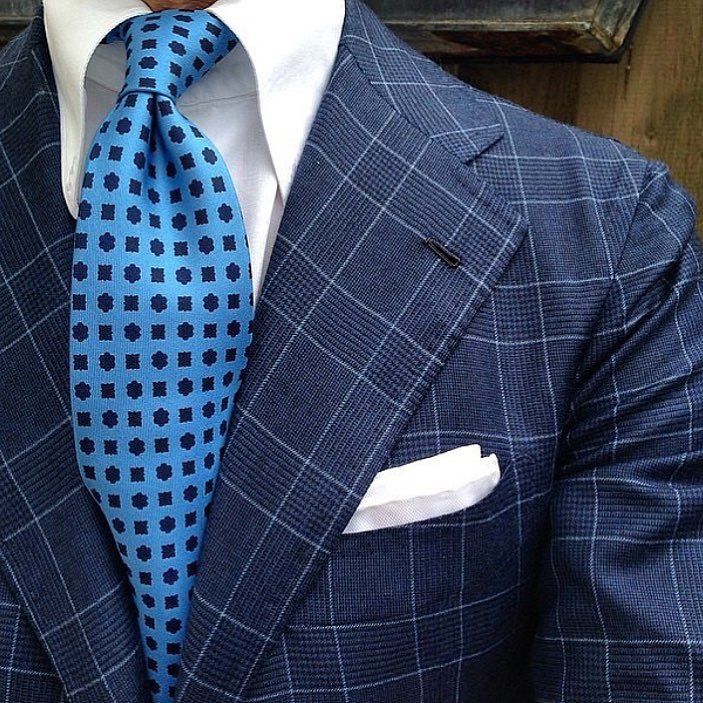 • Выкройка галстука должна быть крупнее выкройки рубашки. Если вы носите клетку в горошек или клетку в полоску, убедитесь, что рисунок на галстуке крупнее, чтобы он выделялся, а не терялся на фоне рубашки.