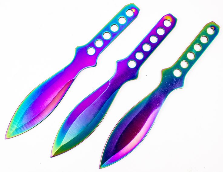 Лезвия из нержавеющей стали имеют титановое покрытие радужного цвета для повышения устойчивости к ржавчине, что делает этот набор одним из самых долговечных доступных вариантов. Рукоятка снабжена плотной нейлоновой оплеткой для улучшения захвата во время броска.
