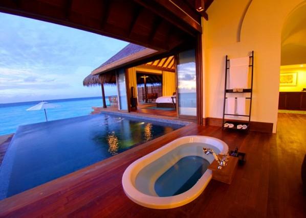 Если вы планируете провести медовый месяц на Мальдивах, вы можете выплеснуть все! Этот пятизвездочный курорт пользуется неизменной популярностью у молодоженов благодаря невероятно хорошему обслуживанию гостей и роскошным удобствам. В каждом номере есть окна от пола до потолка, из которых можно любоваться океаном. Также есть частный пляж, где можно понежиться в лучах солнца.