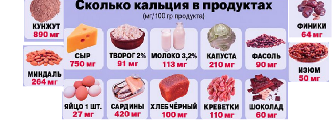 | Прочие продукты | Содержание кальция, мг / 100 г |