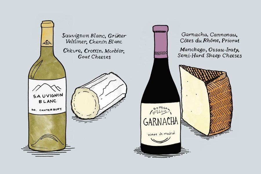 Сочные, острые плоды хорошо сочетаются с молодыми сырами, такими как бри. Сладкие сухофрукты прекрасно сочетаются с солеными сырами, такими как «Стилтон». Маслянистые, горькие орехи вкусны с насыщенным чеддером. От фруктового до сладкого, от орехового до танинного — эти же принципы сочетания применимы и к винам. Если вы сомневаетесь, попробуйте представить, какая еда лучше всего сочетается с сыром, и пусть это приведет вас к вину.