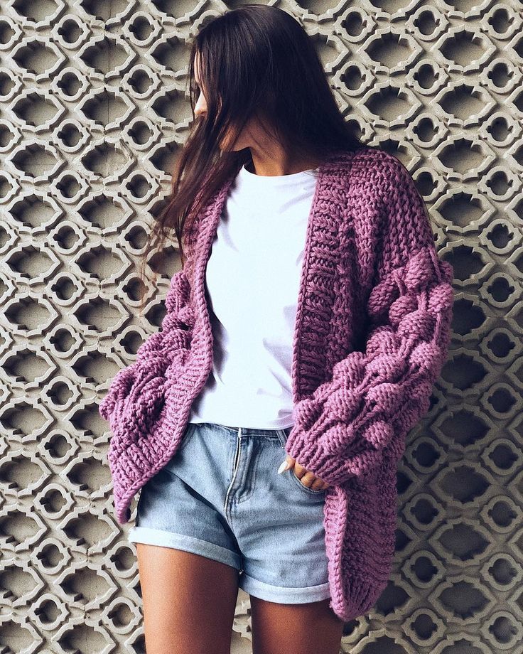 А вот весенне-летний сезон встречают кардиганы из ткани (тонкий хлопок, вискоза, натуральный шелк). Фасоны с гипюром уместны на вечерних романтических прогулках.