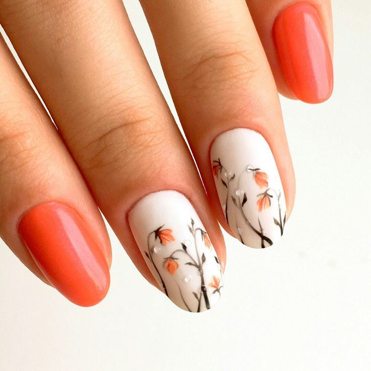 Выделите ноготь на фоне остальных ярким цветочным узором! Чтобы придать глубину вашему осеннему дизайну ногтей, пусть цветы будут живописными и округлыми в своей окраске.