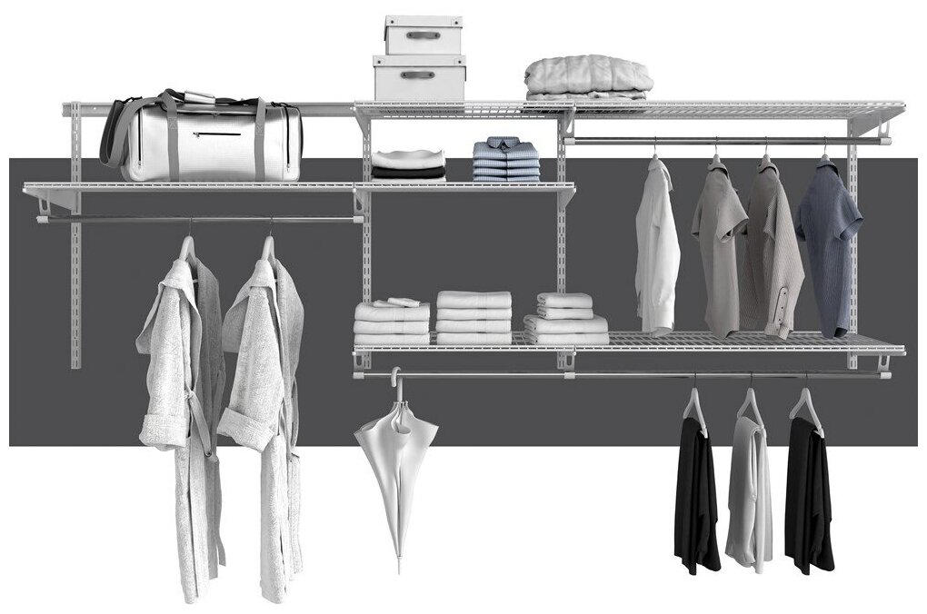 Корпусные гардеробные представляют собой конструкцию, собранную в виде модулей из закрытых шкафов и стеллажей. Самый надежный и недорогой вариант представляет стеллажная гардеробная, состоящая из открытых стеллажей. Сетчатые гардеробные представляют собой недорогие универсальные системы из металла с возможностью расположения полок по своему усмотрению.