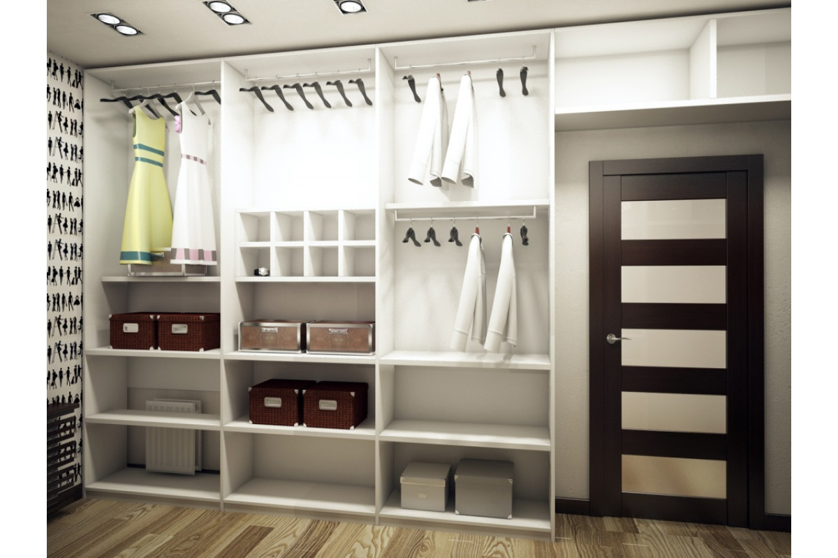 - Плательные вешалки следует размещать в средней части гардеробной комнаты.