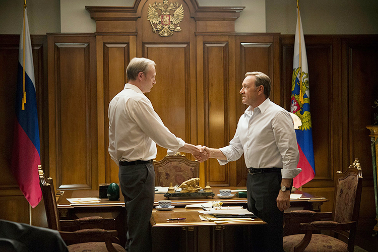 На месте остался и один из главных недостатков предыдущего сезона – беспомощный, слабый Фрэнк. В начале сериала мы наблюдали за его леденящими душу манипуляциями и мирились с его ролью главного героя только потому, что изящество, легкость и мастерство, с которыми он проворачивал свои дела, вызывали невольное восхищение. В третьем же сезоне, стоило Фрэнку, наконец, достичь вожделенного поста президента, дальше ему лезть было уже некуда – он достиг потолка. Оставалось лишь бороться за сохранение того, чего он добился. И вот тут начались проблемы – он начал проигрывать. Неудачи преследовали его одна за другой и из супер-злодея он превратился в обычного политического мудака, который на самом деле не способен справиться даже с другими политическими мудаками. Они оказывались умнее, проворнее и откровенно сильнее характером. В конце он умудрился потерять даже своего ближайшего спутника – свою жену.