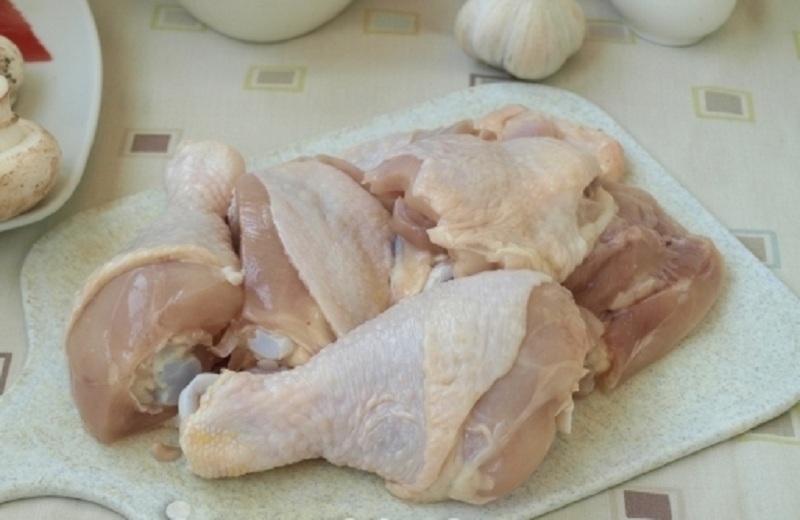 - Какое бы мясо ни выбрали, его необходимо вымыть и просушить. Бедра оставляйте в таком виде, как есть, а филе нарезайте поперек волокон в произвольной форме. Старайтесь делать кусочки одинаковыми, шириной не более 1,5 см.