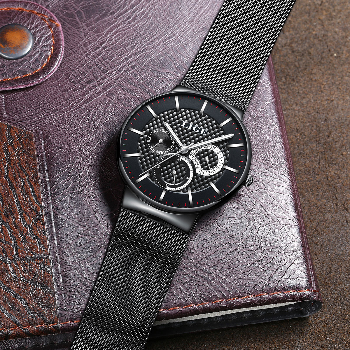 2) Ремешок шириной 20мм: сетчатый(миланская петля) из нержавеющей стали или черный кожаный.