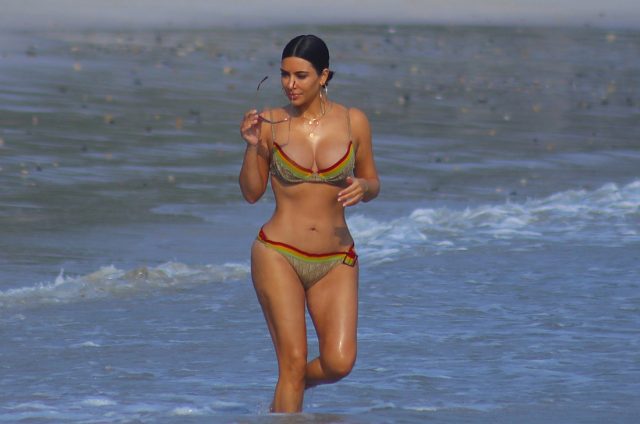 Ну а если посмотреть на фото без фотошопа, сделанные на пляже, можно ещё больше убедиться в том, что фигура Кардашьян не так идеальна, как нам хотят это продемонстрировать.