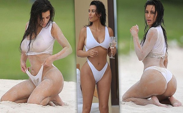 Кардашьян в белом купальнике показала свою сексуальную фигуру.