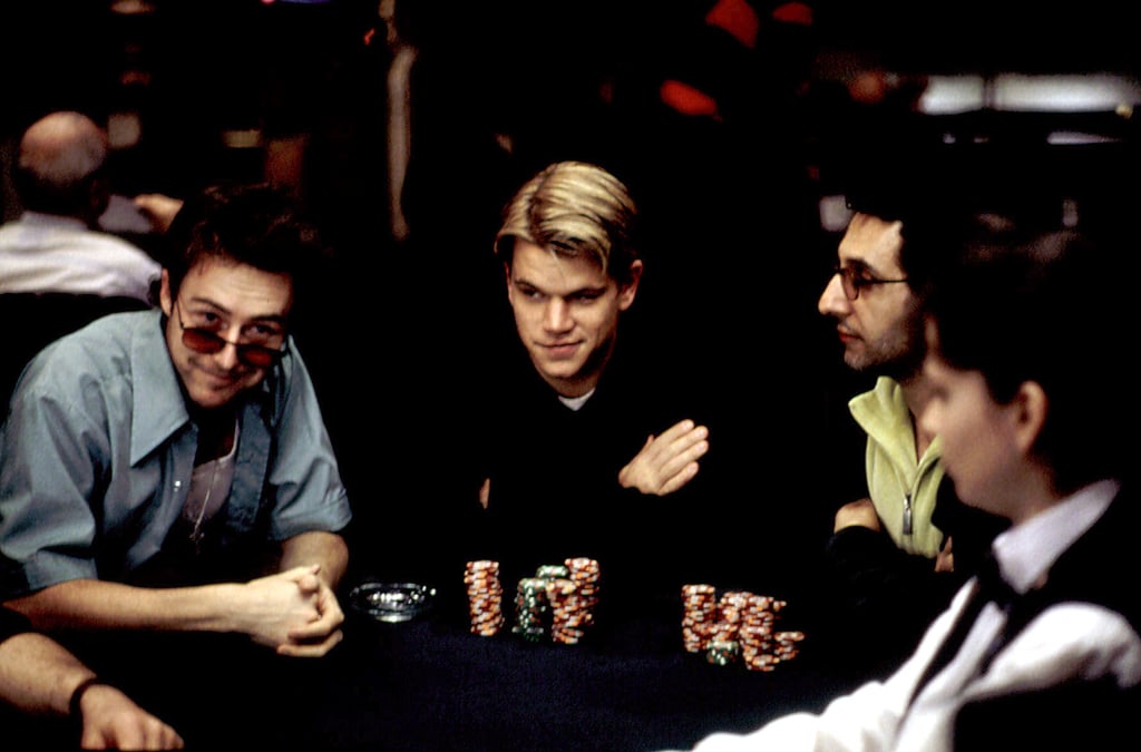 В главной роли 26-летний Мэтт Деймон, Rounders снова сталкивает Умница Уилл Хантинг чудо-мальчик как самый умный , милашка с широко открытыми глазами в комнате . Однако на этот раз он выигрывает в покер, а не решает уравнения на доске. Rounders также имеет одну из величайших строк во всем кино: Джон Малкович кричит: «Отдайте этому человеку его деньги!»