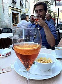 Он не такой горький, как Кампари, поэтому его часто выбирают вместо спритца Кампари.