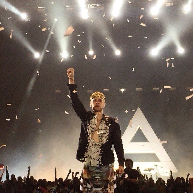 Он добавил: «И я хочу сообщить вам, я понимаю, что другие группы отменили свои концерты, но ни хрена, ни хрена, 30 Seconds to Mars не собирались выступать здесь в этот прекрасный город, в этой великой стране сегодня вечером».