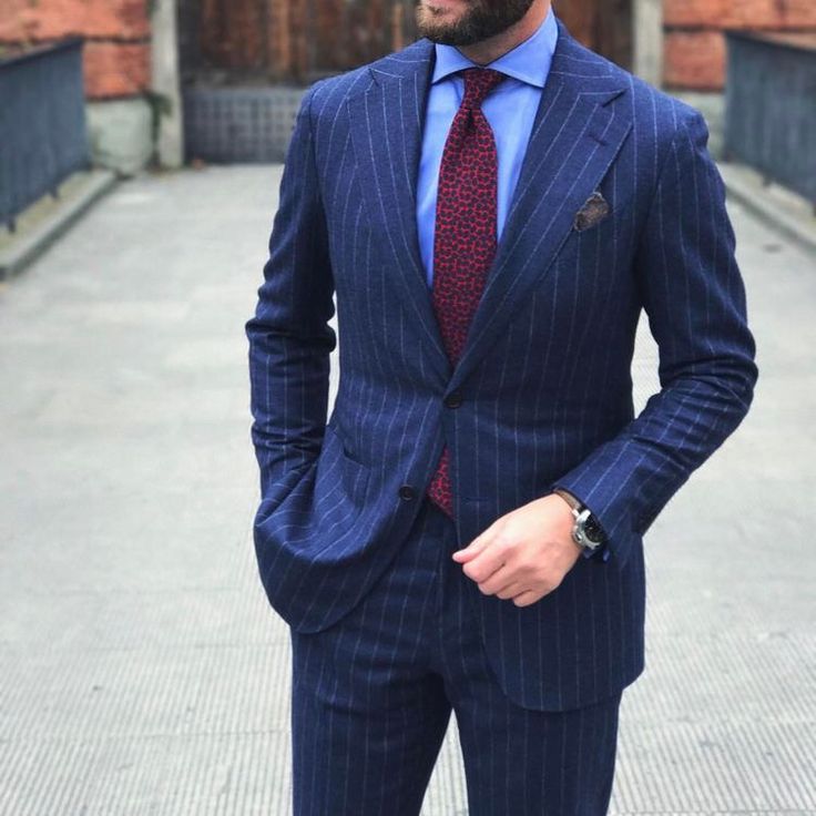 Красный идеально сочетается с синим костюмом; это смело, но не подавляюще. Синий — еще один цвет, который не может не понравиться, если вы сочетаете галстук и рубашку.