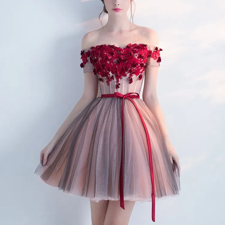 Длиной до колен красный атласный корсет короткое бальное платье выпускного вечера