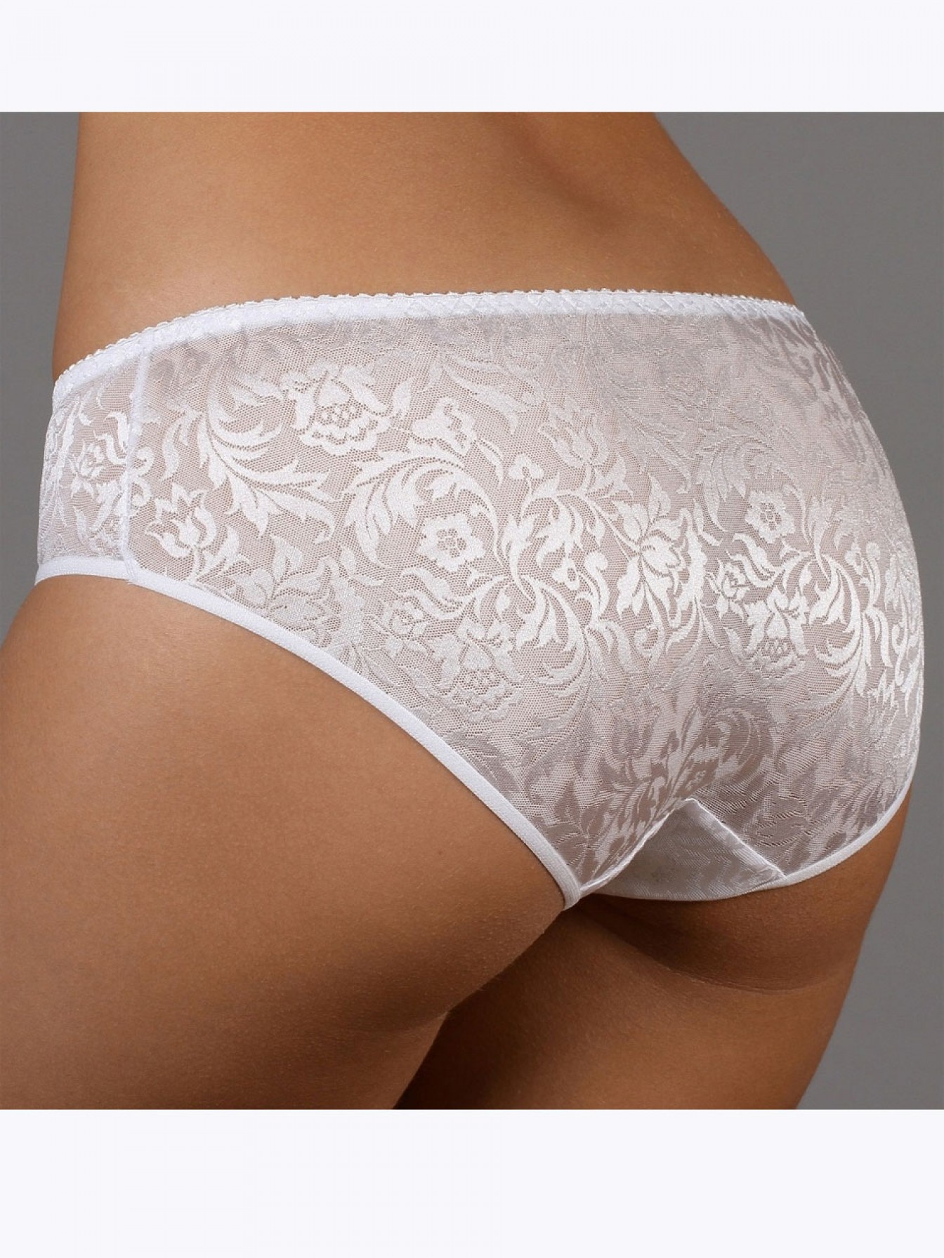 В центральной части материала простой рисунок.Обе стороны материала однотонные. Элегантность дизайна этих трусиков неявна. Трусики выглядят сдержанно, в основном закрывающие и с высоким поясом. Трусики выглядят очень удобными в использовании. Трусики хорошо известны как бабушкины трусики. Эти трусики можно носить с джинсами.