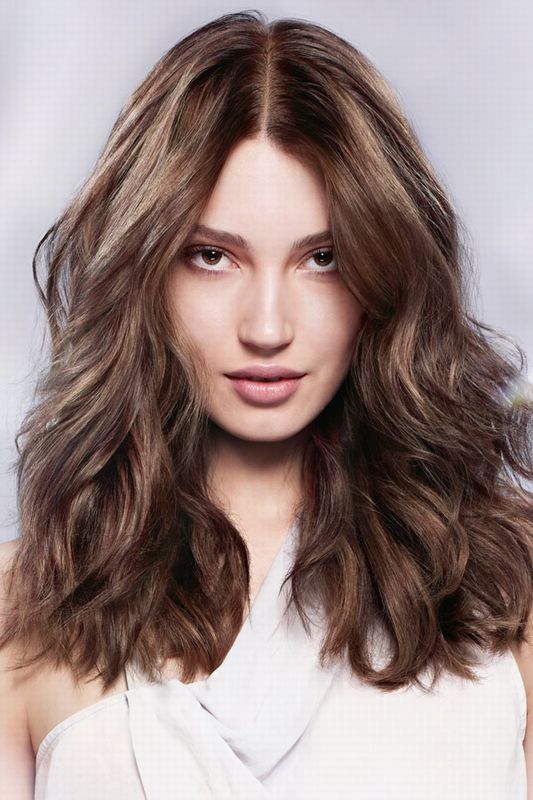 Спостерігається м’який, непомітний перехід від темнішого відтінку до світлого. Світліші відблиски виглядають контрастно, тому зачіска буде об’ємною. Це фарбування лише підкреслює глибину карих очей. Від дрібних кучериків віє молодістю та ніжністю.