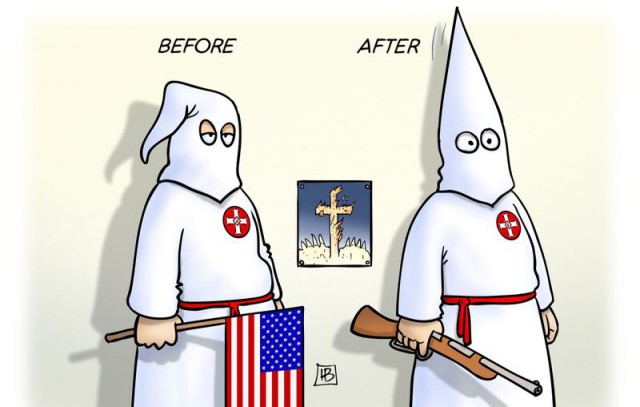 У большинства американцев Ку-клукс-клан вызывает отвращение, однако власти страны не могут запретить его деятельность, поскольку это общество защищено первой поправкой к Конституции, которая запрещает посягать на свободу