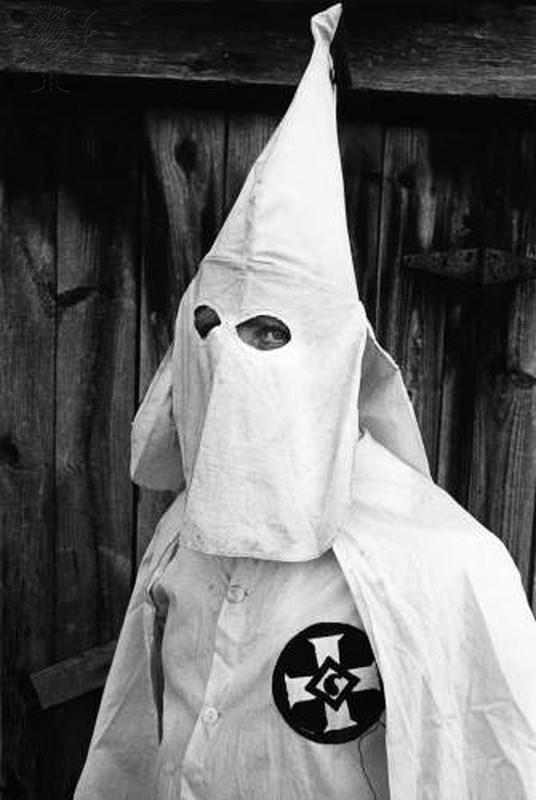 Для устрашения и невозможности идентификации члены клана одевались в белые балахоны с остроконечными колпаками, в которых были только прорези для глаз. Символом организации был горящий крест.