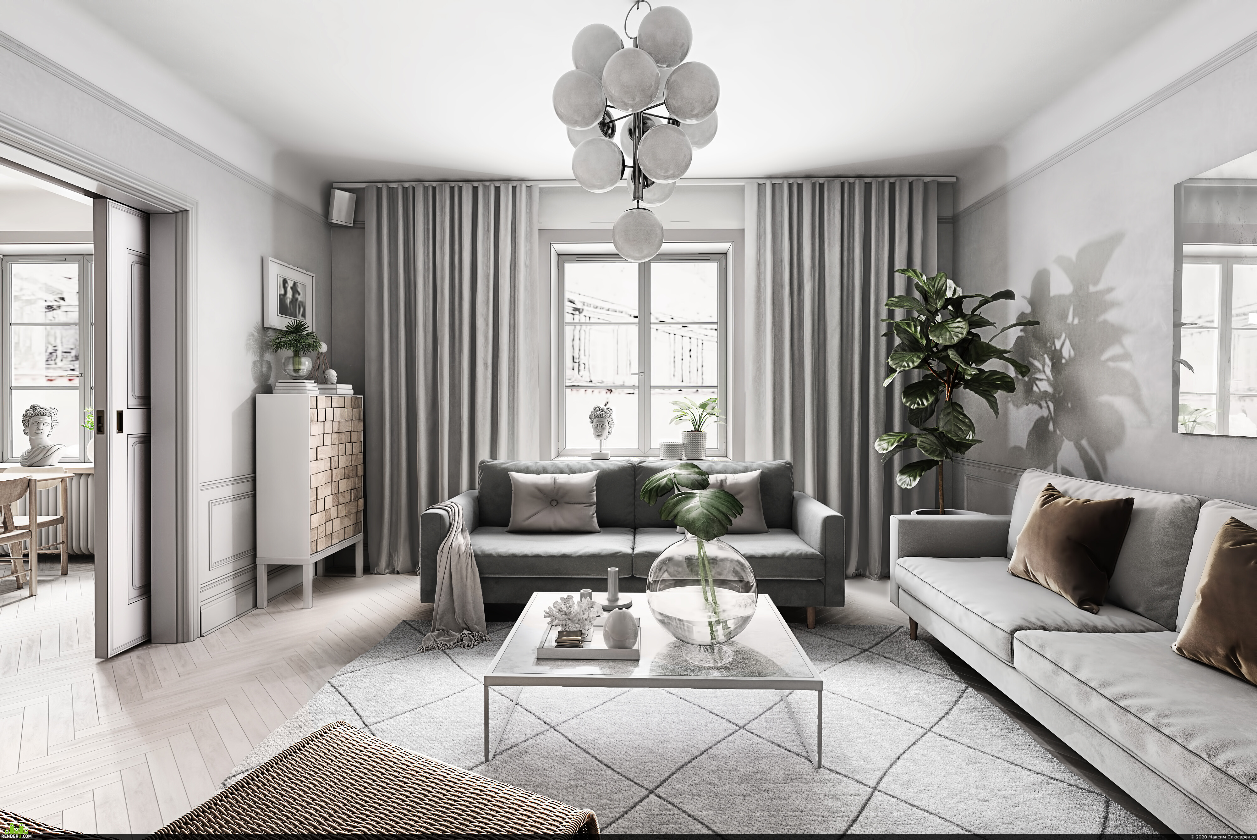 Лёгкий словно облако. Интерьер квартиры в серых тонах
