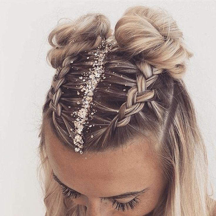 Космические пучки — еще одна вещь, которая в последнее время покорила мир. И что может быть лучше, чтобы получить космические булочки, чем заплести их. Разделите волосы посередине и завяжите их в два хвоста. Заплетите каждый хвостик и скрутите их в пучок. Та-да, ты выглядишь великолепно.