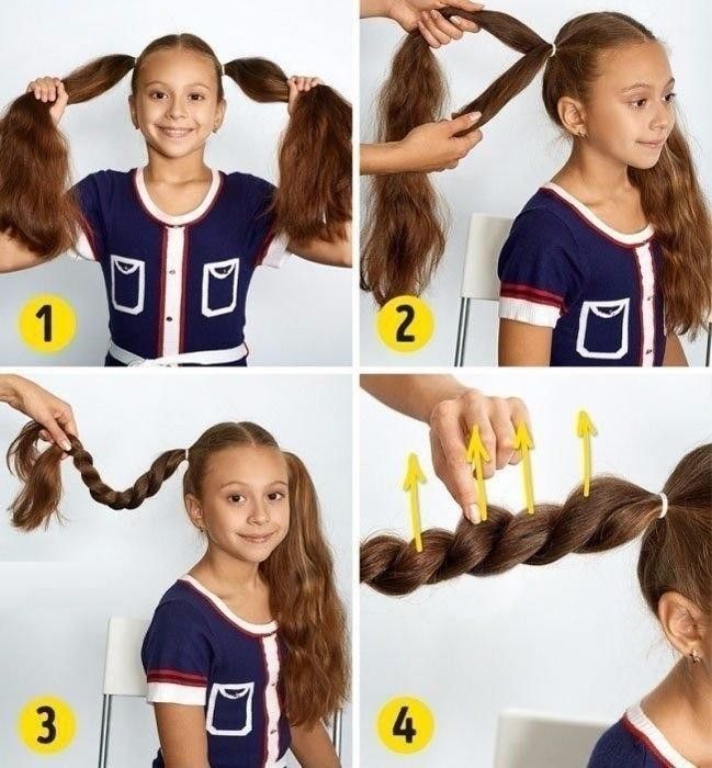 Их очень легко сделать. Соберите волосы в хвост, разделите их на две пряди и начните скручивать их вместе, как показано на фото ниже. Наконец, наденьте резинку для волос, цвет которой наиболее близок к цвету ваших волос, и все готово к новому дню.
