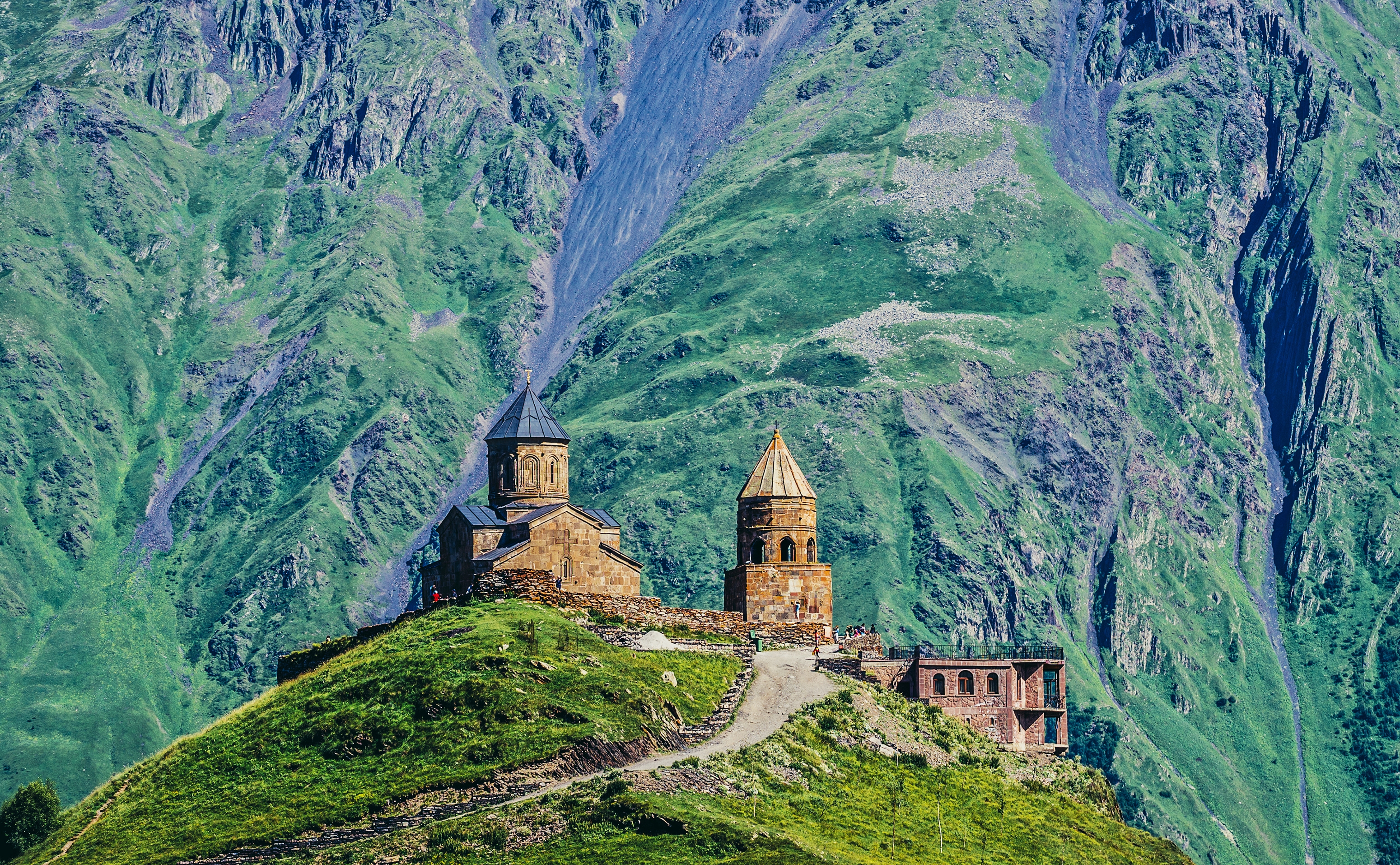 Древний караван-сарай (место отдыха торговцев на Шелковом пути) стоит и по сей день. Вид на зеленую долину внизу просто захватывает дух.