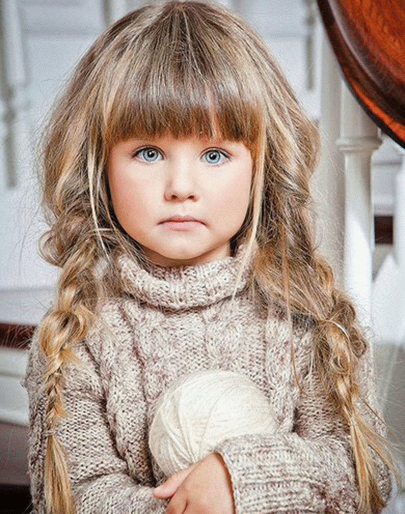 Давайте подчеркнем сияющую красоту вашей маленькой девочки с помощью этой прекрасной стрижки, показанной ниже на картинке. На этот раз на красивых длинных волосах представлена челка. Вы можете видеть, как очаровательно выглядит маленькая девочка с этой сказочной прической. Это будет одинаково лучше для вашей принцессы.