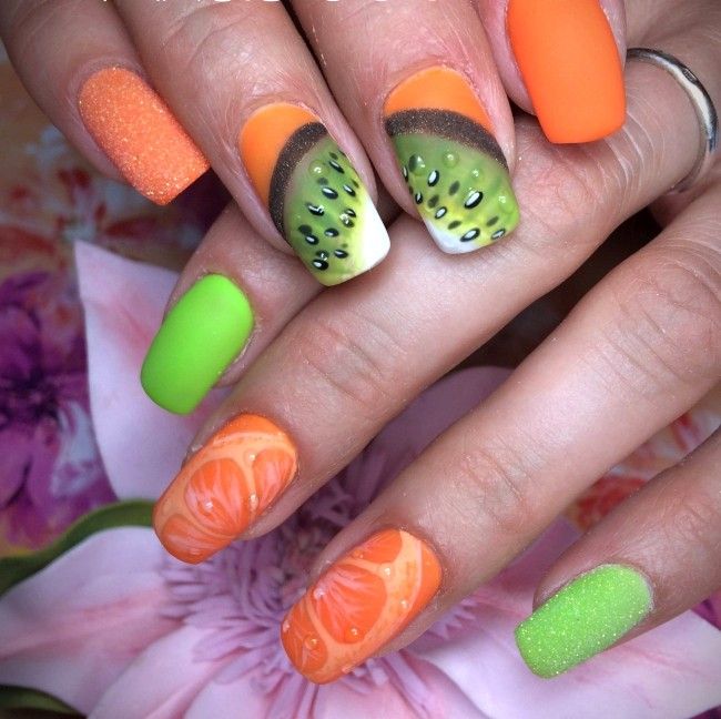 - Летний маникюр с фруктовыми узорами