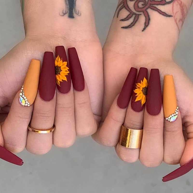 Самый популярный маникюр с кленовыми листьями