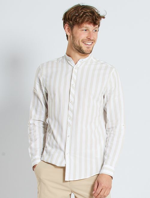Grandad Collar (ΠΎΠ½ ΠΆΠ΅ Band Collar) β ΡΡΠΎ, ΠΏΡΠΎΡΠ΅ Π³ΠΎΠ²ΠΎΡΡ, Π²ΠΎΡΠΎΡΠ½ΠΈΠΊ ΡΡΠ±Π°ΡΠΊΠΈ Π±Π΅Π· Π·Π°Π³Π½ΡΡΠΎΠΉ ΡΠ°ΡΡΠΈ.