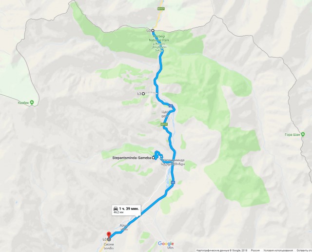 Дорога из Тбилиси в муниципалитет Казбеги занимает примерно 2 часа 24 минуты, включая пересадки.
