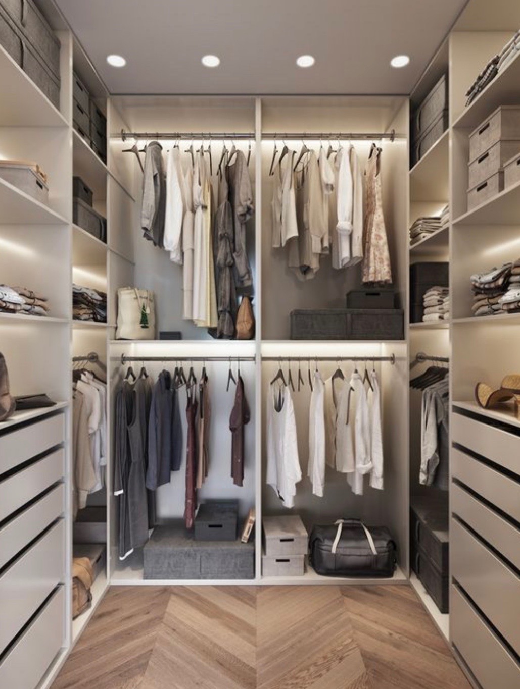 дизайн гардеробной с несколькими ящиками