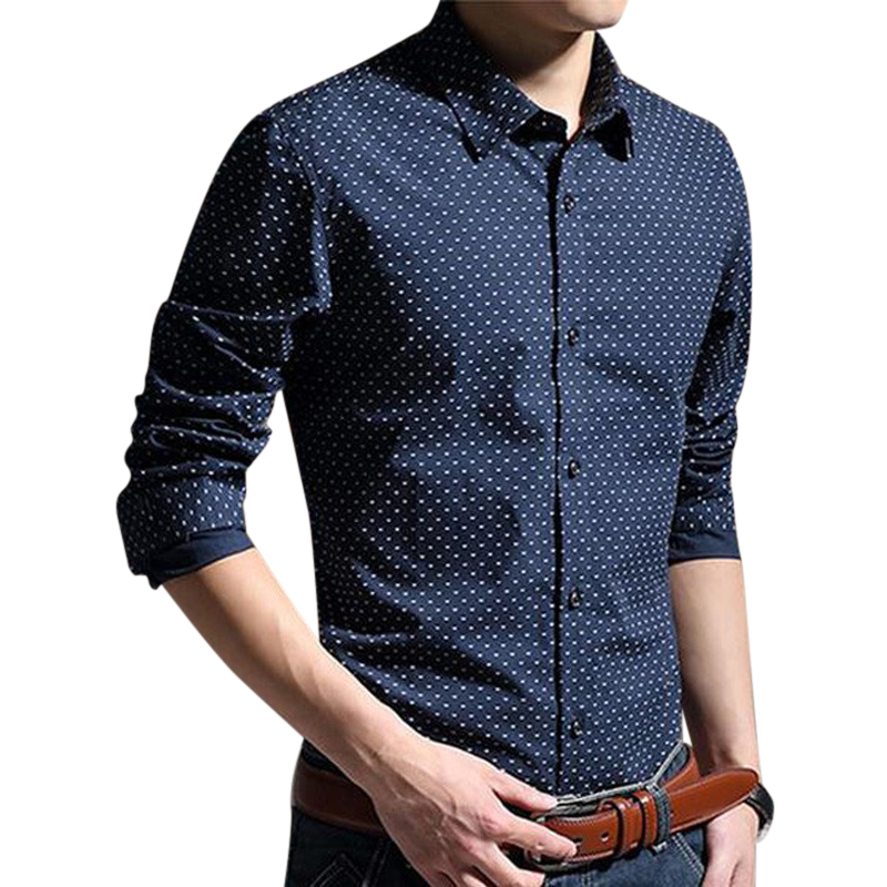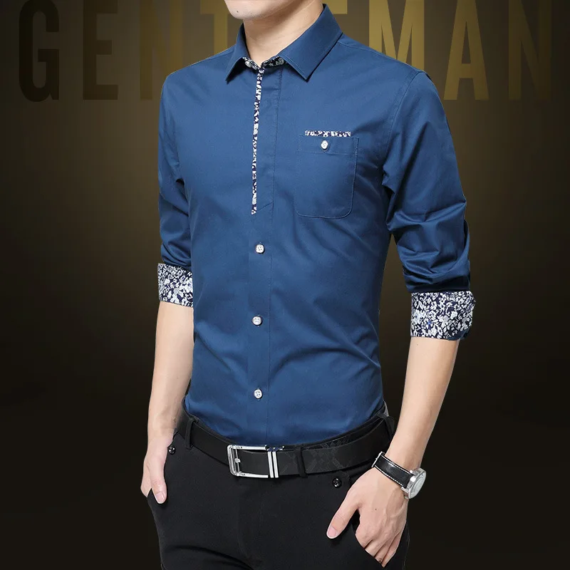 Стильная классическая мужская рубашка | Молодежная рубашка синего цвета | Модная рубашка с длинным рукавом