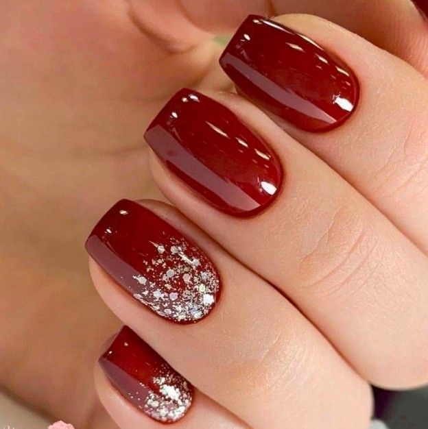 Чрезмерная роскошь красного покрытия немного подновляется сдержанной красотой, которую добавляет красному тону серебро. Эти два цвета помогут сотворить несравненный маникюр для каждого случая. Достаточно всего-то покрыть красным лаком три или четыре ноготка, а на остальные нанести серебристые блесточки.