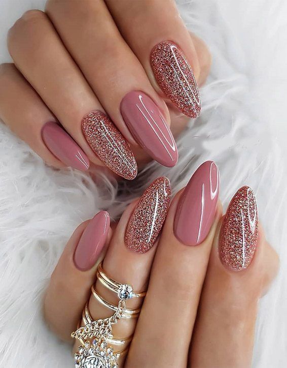 Блестки на кремовой нюдовой основе с легкими тонами образуют ультра-приятный и модный маникюр в 2021 году, который не только бросается в глаза, но и абсолютно безупречен, чем большинство других гелевых дизайнов с блестками.
