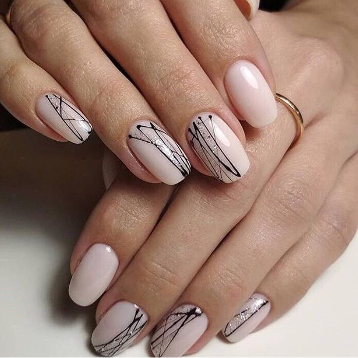 Для любительниц дизайна подойдет нюдовый маникюр с блестками или с черным графичным рисунком.