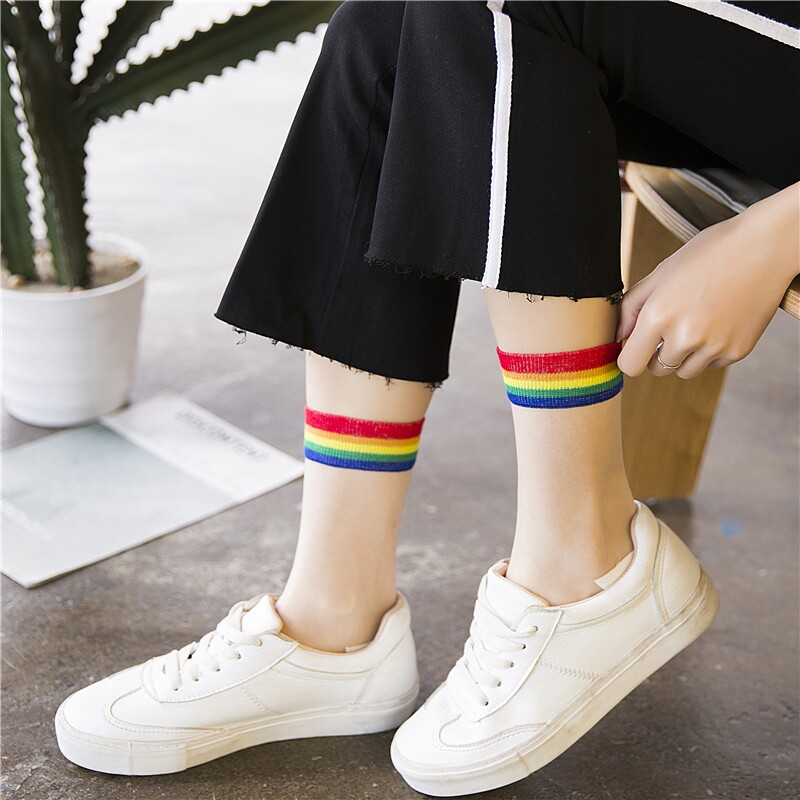 Капроновые обычно носят женщины в сочетании с лодочками или туфлями на каблуках. Последние несколько лет популярностью пользуются капроновые носки, украшенные пайетками и бусинами. Это смотрится очень мило и необычно. Такие носки также можно сочетать с кроссовками, но в таком случае лучше воздержаться от массивных брендированных кроссовок. Отдавайте предпочтение женственным моделям в нейтральных и пастельных тонах